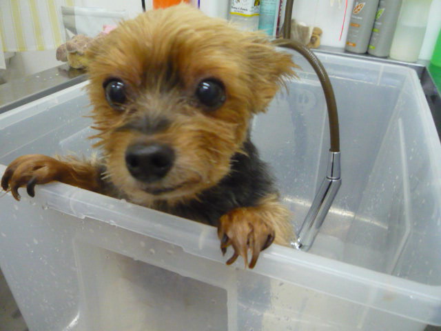 寒さに負けず、今日もトリミングに来て